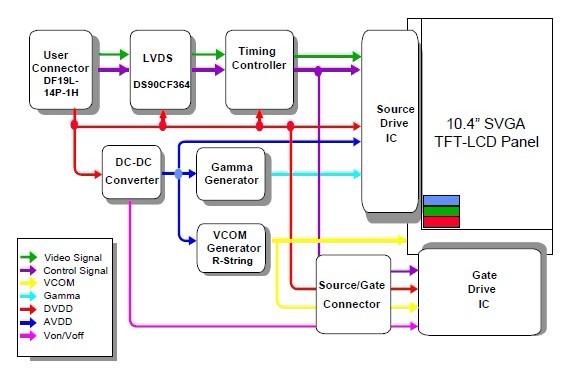LTN104S2-L01 features: (1)Thin and light weight; (2)High speed response time; (3)High contrast ratio, High brightness; (4)SVGA (800 x 600 pixels) resolution; (5)Low power consumption; (6)Sync mode (75Hz); (7)LVDS Interface with 1 pixel / clock (1 channel).