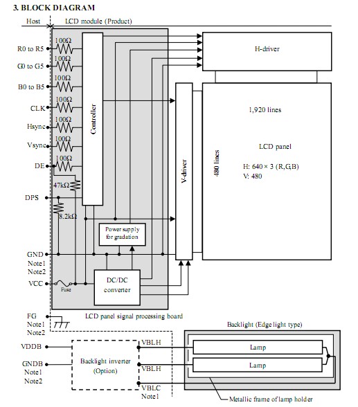 NL6448BC33-59 specifications: (1)Display area: 211.2(W) ×158.4(H)mm (typ.); (2)Diagonal size of display: 26 cm (10.4 inches); (3)Drive system: a-Si TFT active matrix; (4)Display color: 262,144 colors; (5)Pixel: 640 (H)×480(V) pixels; (6)Pixel arrangement: RGB vertical stripe; (7)Dot pitch: 0.11(W)×0.33(H) mm; (8)Pixel pitch: 0.33(W)×0.33(H) mm; (9)Module size: 243.0(W)×185.1(H)×10.5(D) mm(typ.).